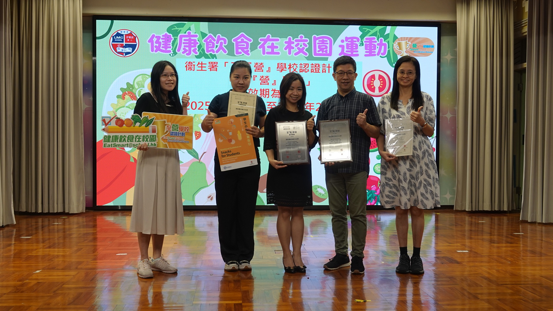 本校成功取得衞生署「至『營』學校認證計劃」的「基本認證」、「健康午膳優 質認證」及「健康小食優質認證」資格,並獲嘉許「至『營』學校」